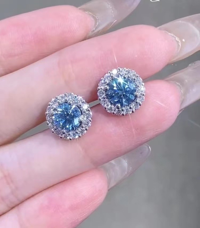 Laboratorium Diamant Juwelen Blauwe ronde snit Verloving Bruiloft Ideeën Fancy Diamant Studs oorbellen.